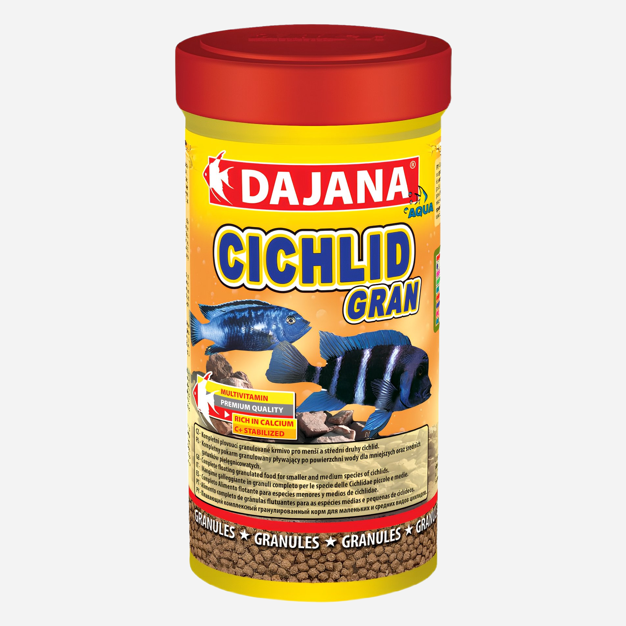 Cichlid Granulat 250ml (6stk pr. kolli) er tilbehør til akvariet i robust kvalitet. Udviklet til daglig brug med enkel betjening.